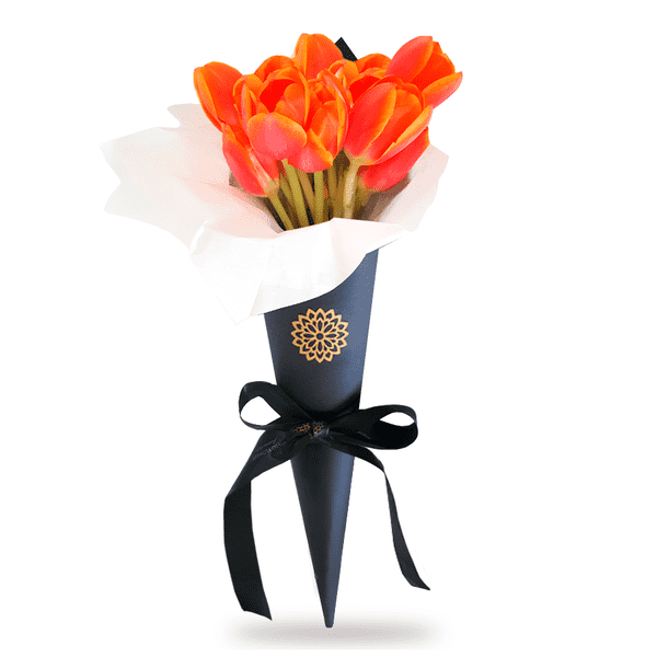 10 Tulipanes Naranja Cono Negro